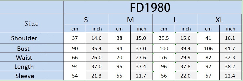 1. Aziatische maten zijn 1 tot 2 maten kleiner dan Europese en Amerikaanse maten. Kies de grotere maat als uw maat tussen twee maten in ligt. Houd rekening met een verschil van 2-3 cm vanwege handmatige meting. 2. Controleer de maattabel zorgvuldig voordat u het artikel koopt. Als u niet weet welke maat u moet kiezen, neem dan contact op met onze klantenservice. 3. Zoals u weet, geven verschillende computers kleuren anders weer. De kleur van het daadwerkelijke artikel kan enigszins afwijken van de onderstaande afbeeldingen.