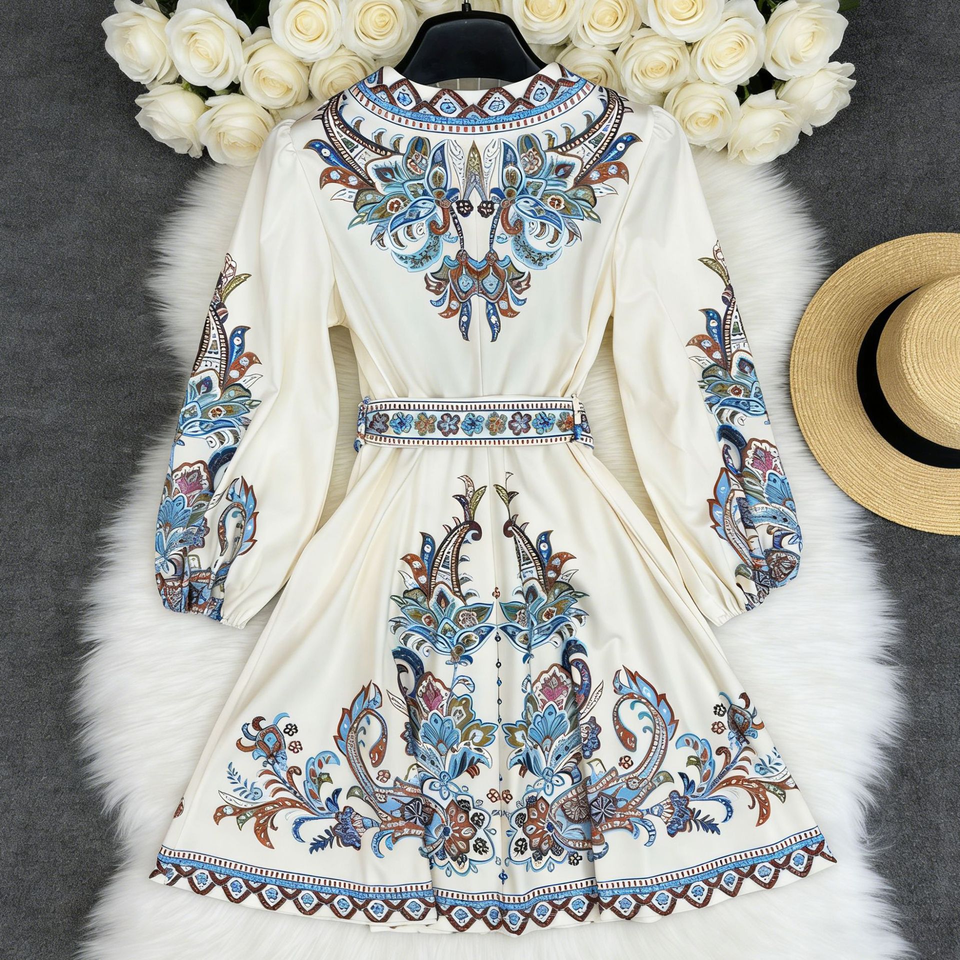 Womens Holiday-Style Casual Printed Dress